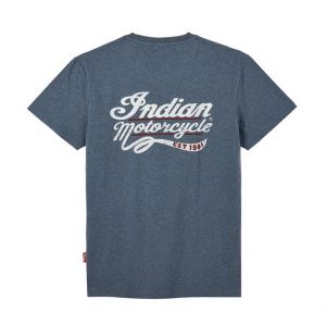 • Liten Indian motorcykellogotyp på bröstet och stor tryckt och broderad manuslogotyp på baksidan.