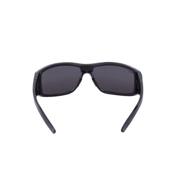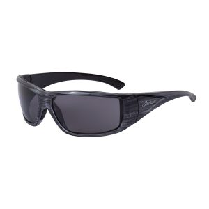 Snygga, stilrena gråmelerade tonade solglasögon för MC-åkaren. CE-certifierade. Direktiv 89/686 / EEG. Objektivfilter Kategori 3. 100% UVA+UVB skydd, anti-fog-coatade, ej avtagbart  EVA-skum runt ögonen för att reducera vind och irriterande ljus i periferin för en så bekväm åktur som möjligt.